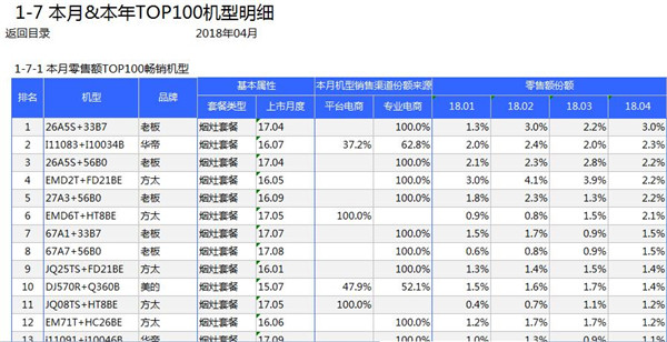 权威家电市场监测机构北京奥维云网市场研究显示,2018年是烟机行业迭代速度加快的一年,其中最重要的一项是油烟机的排风量指标,17m³排风量被称为大吸力的时代已经过去,20m³及以上排风量的超大吸力油烟机渗漏率较去年同期大幅上涨,“大吸力”之争有愈演愈烈态势;另外,油烟机的自清洁功能也成为今年厂家产品开发及市场营销的重要一环,成为高端烟机的一个重要考核标准。
