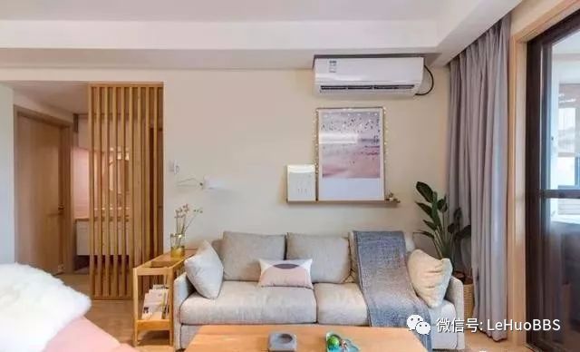 挨着沙发墙做了一扇隔断,不仅可以装饰,而且也可以很好的把卫生间的门给隐藏了。